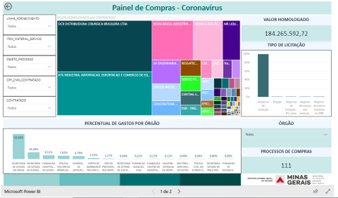 Dentre várias medidas implementadas, destaca-se a utilização da ferramenta do Power BI que permite visualizações interativas e recursos de business intelligence com uma interface simples para que os usuários naveguem pelos dados de compras e contratações emergenciais para o enfrentamento da COVID-19. Também foi disponibilizada a relação das doações recebidas pela força-tarefa, gerenciada pela Defesa Civil de Minas Gerais, e as informações sobre a destinação dessas doações.
